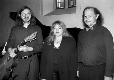 Über weite Strecken war es eine anspruchsvolle, raue und schwere Kost, dargeboten von Susann Finckh-Bucher (Gesang), Markus Stange (Klavier) und Wolfgang Daiß (Konzert- und Tapping-Gitarre). Die Namen der Komponisten sprechen für sich. An Texte von Hölderlin wagten sich Britten, Eisler, Klebe, Henze, Rihm, Killmayer, Nenning und Florey. Der Komponist Wolfgang Nenning war zur Uraufführung seiner fünf Lieder sogar eigens aus Wien angereist. Der 1966 geborene Komponist hat fünf Hölderlinfragmente für Mezzosopran und Gitarre vertont.
