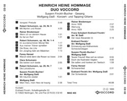 Diese vielschichtige Heinrich-Heine-Hommage für Stimme und Gitarre entstand im Jubiläumsjahr 1997. Die ausgewählten Lieder zwischen Traum und Wirklichkeit zeigen schwärmerische Romantik und gleichzeitig deren Brechung in Ironie und Sarkasmus. Das DUO VOCCORD präsentiert sich mit seiner ganzen vokalen und instrumentalen Bandbreite.